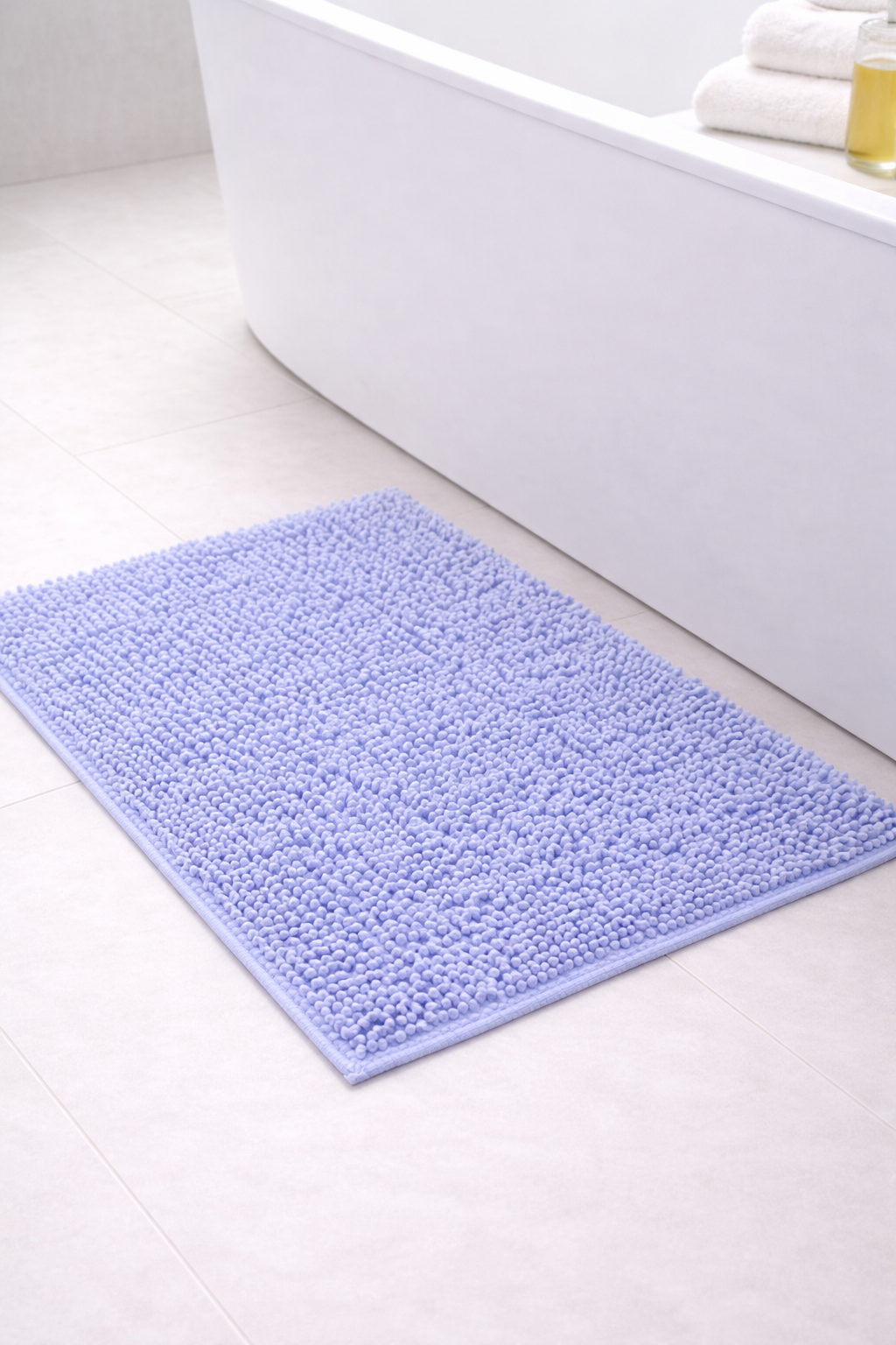 Fabricada en 100% microfibra, destaca por su suavidad extrema y su agradable efecto mullido bajo los pies. Un material ligero y eficiente que ofrece una absorción instantánea, ayudando a mantener el suelo seco tras la ducha o la bañera.