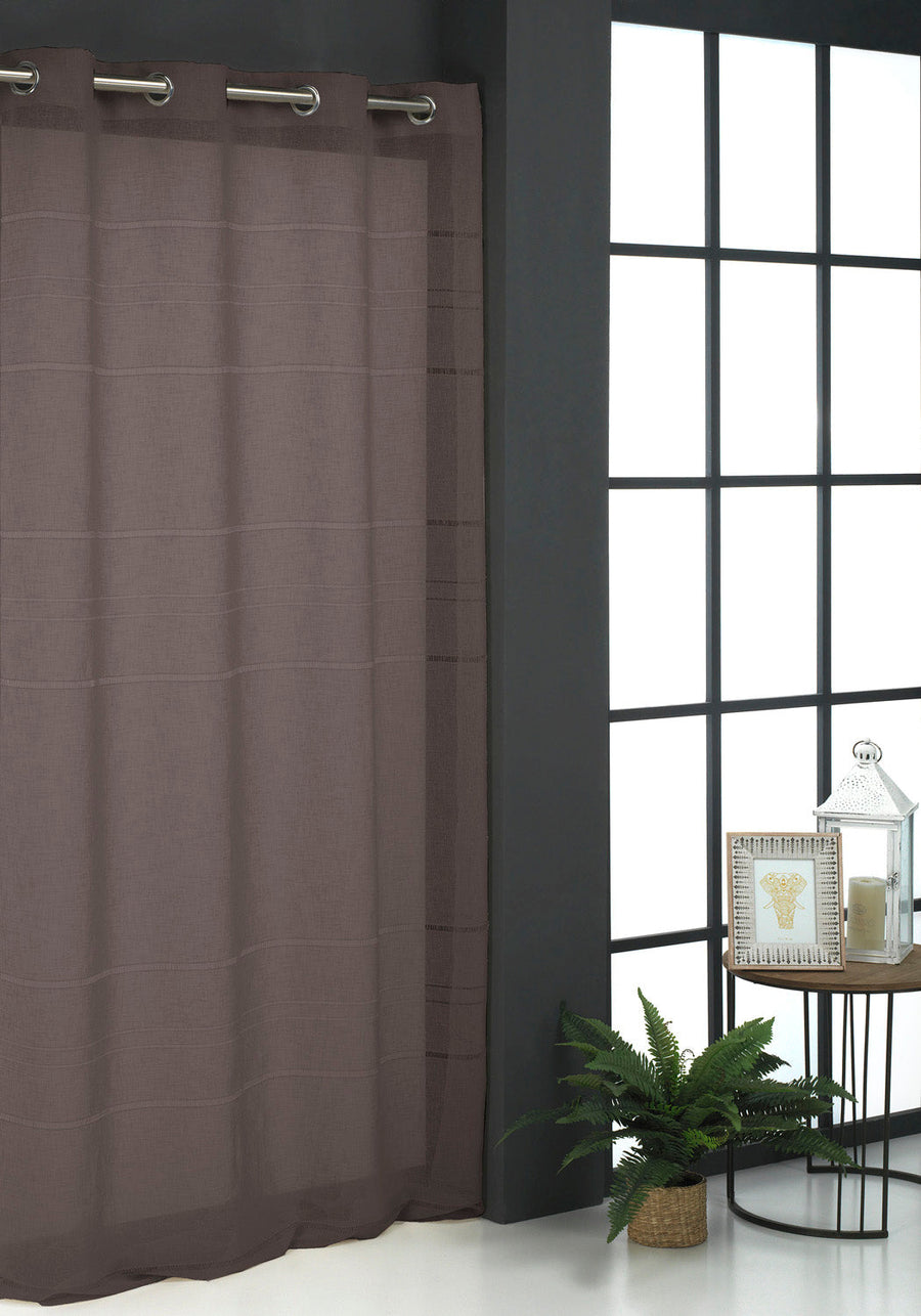 Cortina Silvania, confeccionada en tejido poliéster. Con ojales metálicos para su instalación en barra fija. Da un toque de elegancia a tu hogar, permitiendo el paso de la luz.