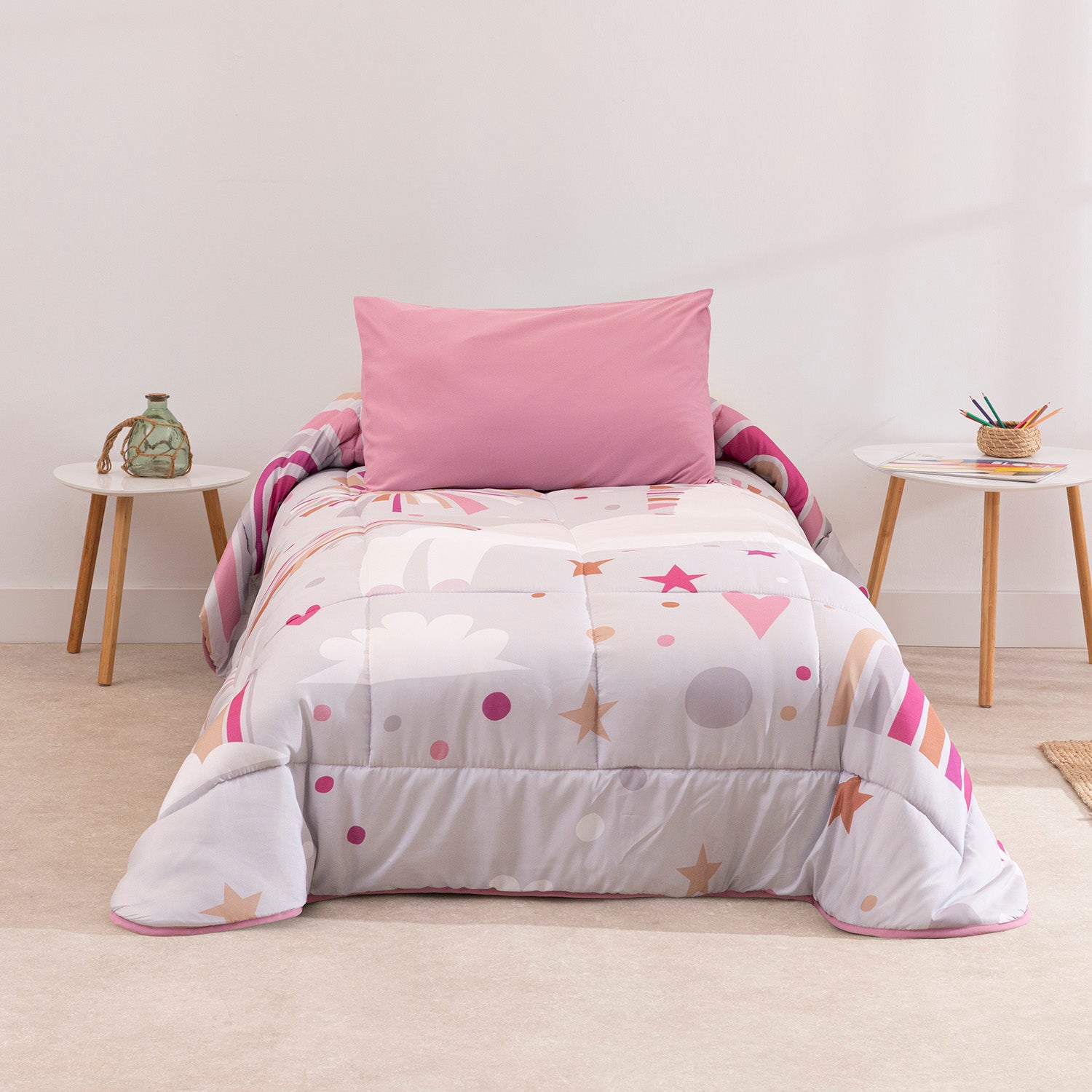 El Edredón Karamelo Confort Digital Fantasy es un edredón de invierno pensado para llenar el dormitorio infantil de color, fantasía y confort. Su diseño fantasy en tonos rosas, realizado mediante estampado digital de alta definición, ofrece un acabado nítido y alegre que convierte la cama en un espacio lleno de magia e imaginación.