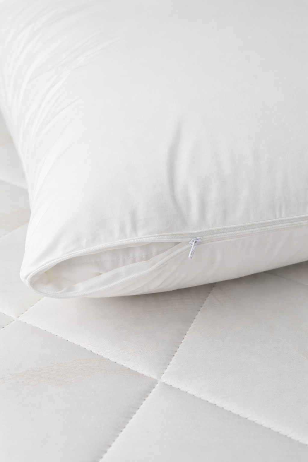 Funda de almohada de tacto muy suave, transpirable y impermeable. Lámina de máxima transpiración, hipo alergénica y anti-ácaros. Ideal para la protección de la almohada. Con cierre en cremallera.
