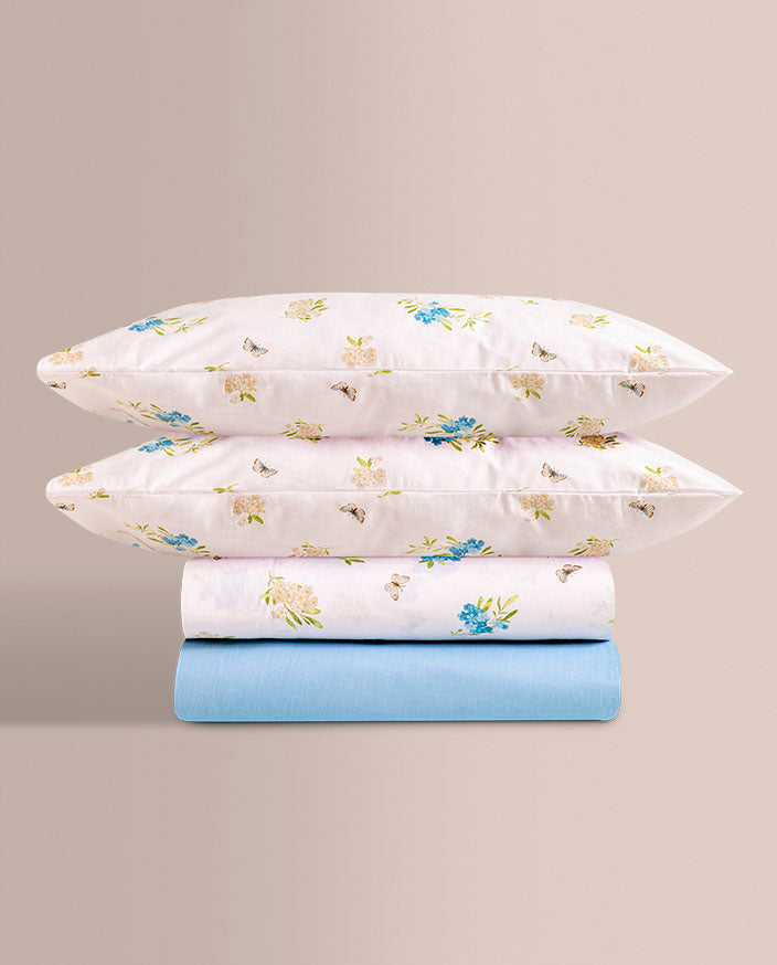 Renueva tu dormitorio con la serenidad que ofrece el modelo Eterea Celeste de Don Algodón. Este conjunto ha sido diseñado para quienes buscan una estética limpia y relajante, combinando un delicado estampado en tonos celestes con una sábana bajera ajustable en color liso. El resultado es un equilibrio visual luminoso que se integra con facilidad en cualquier estilo decorativo, transformando la habitación en un espacio de calma.