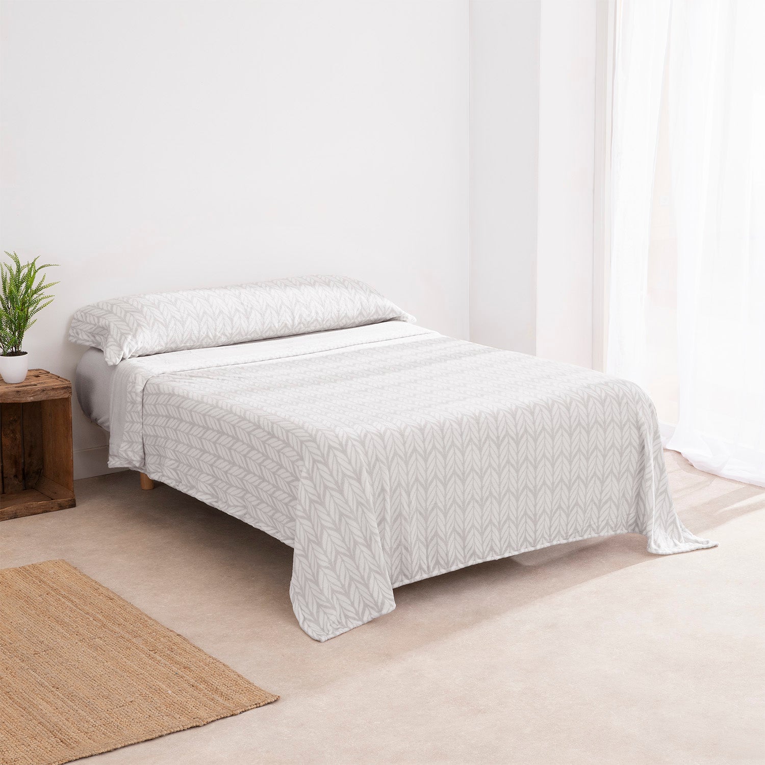 Diseño Elegante y Versátil: El estampado de espiga en tonos grises aporta una estética natural y luminosa que combina fácilmente con cualquier estilo.