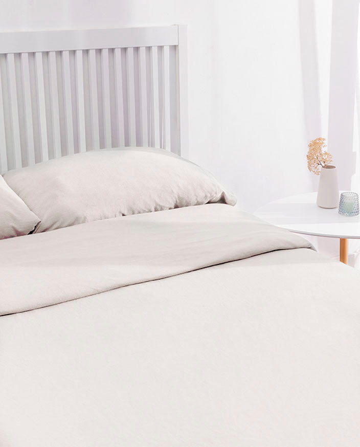 Olvídate de cambiar la ropa de cama con la estación. Nuestras sábanas son termoelásticas, ideales para verano e invierno. Su fibra natural de algodón es altamente transpirable, lo que te mantendrá fresco en las noches cálidas y abrigado cuando haga frío.