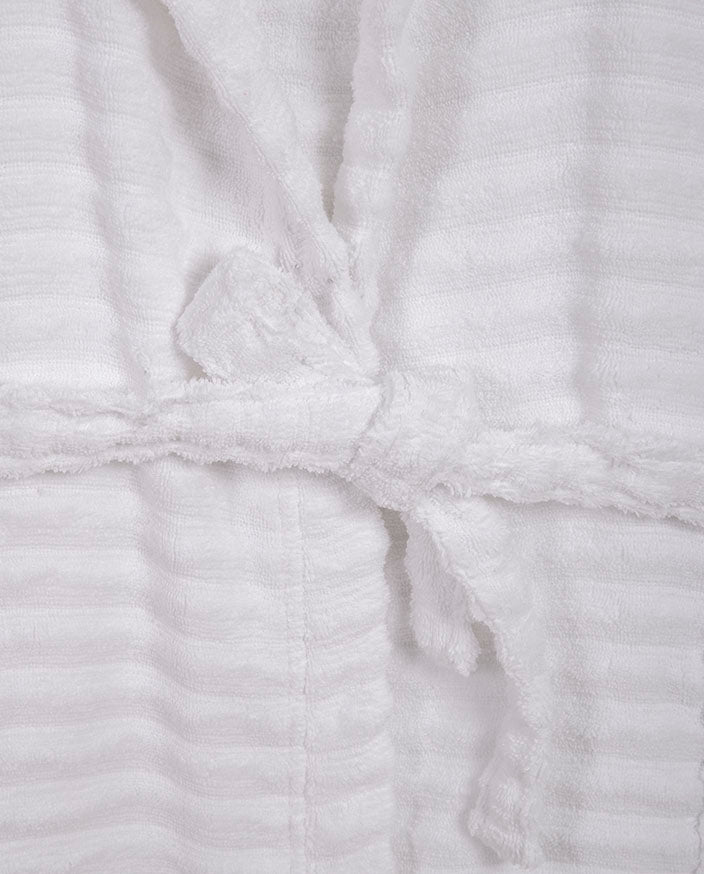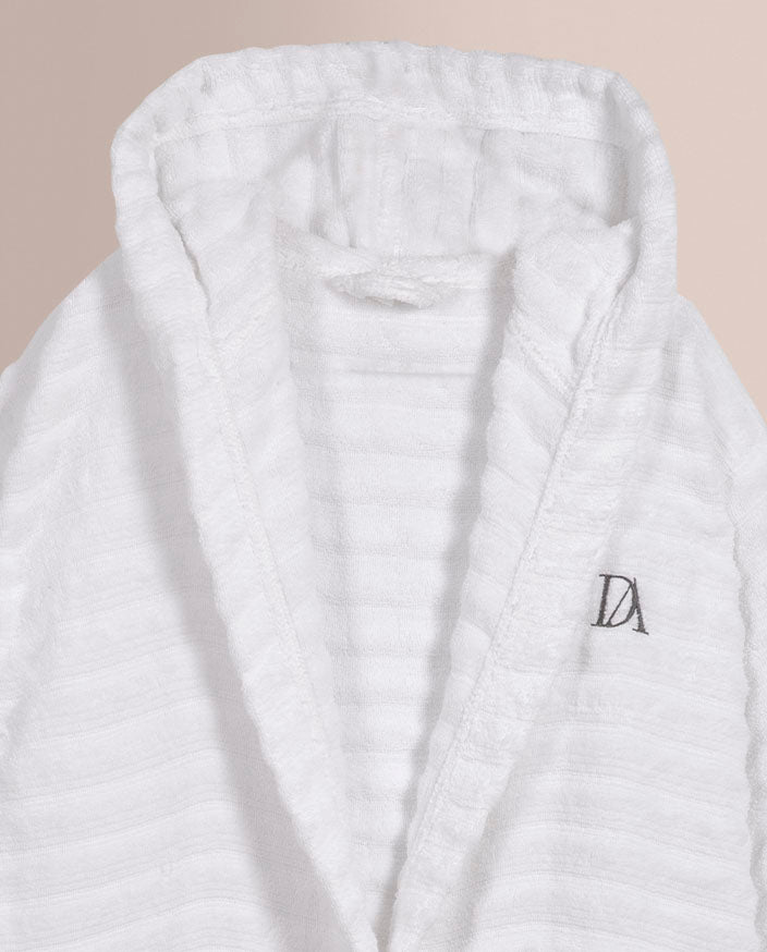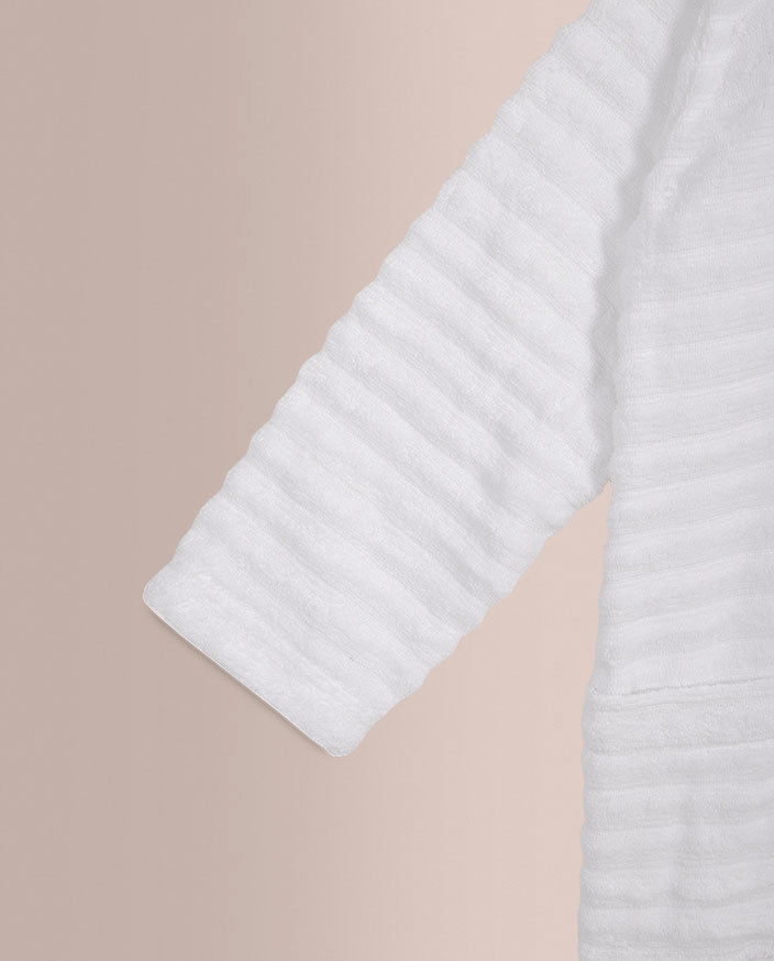 El albornoz está confeccionado en 100% algodón, un material natural reconocido por su alta capacidad de absorción, suavidad y resistencia al uso frecuente. Su rizo esponjoso ofrece una sensación envolvente sobre la piel, ideal tanto para uso diario como para momentos de relax más pausados.