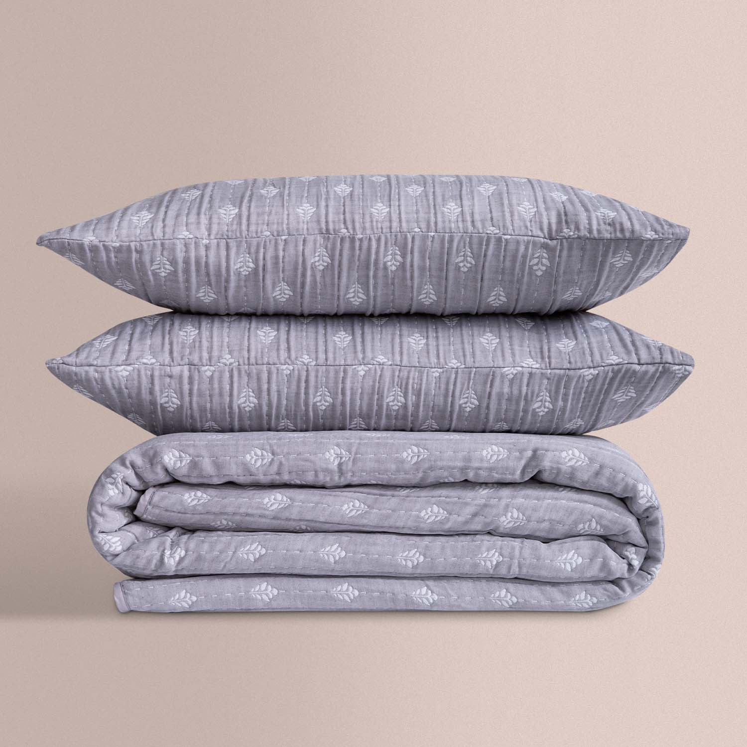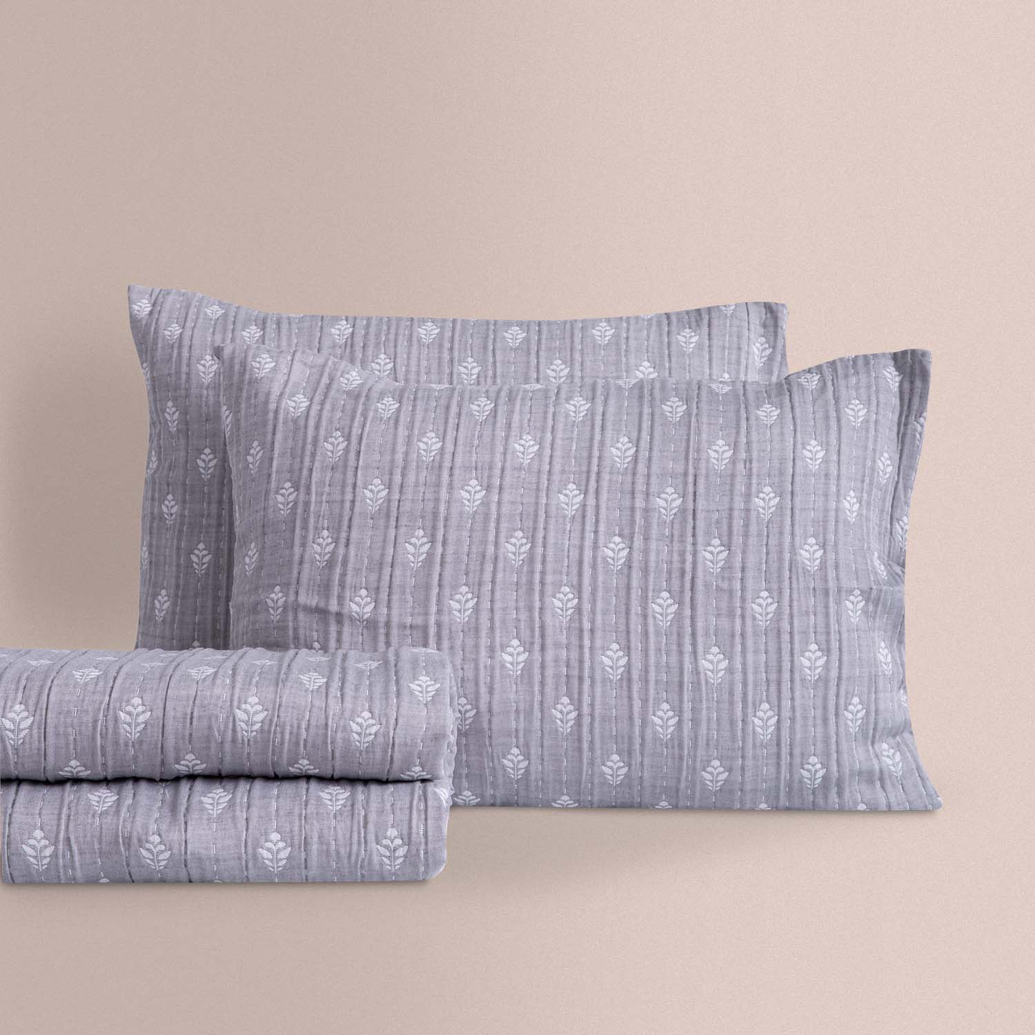 El juego de colcha incluye cojines a juego, completando el conjunto y aportando una estética armoniosa y equilibrada a la cama. Una pieza imprescindible para quienes buscan confort, estilo y valores en un mismo producto.