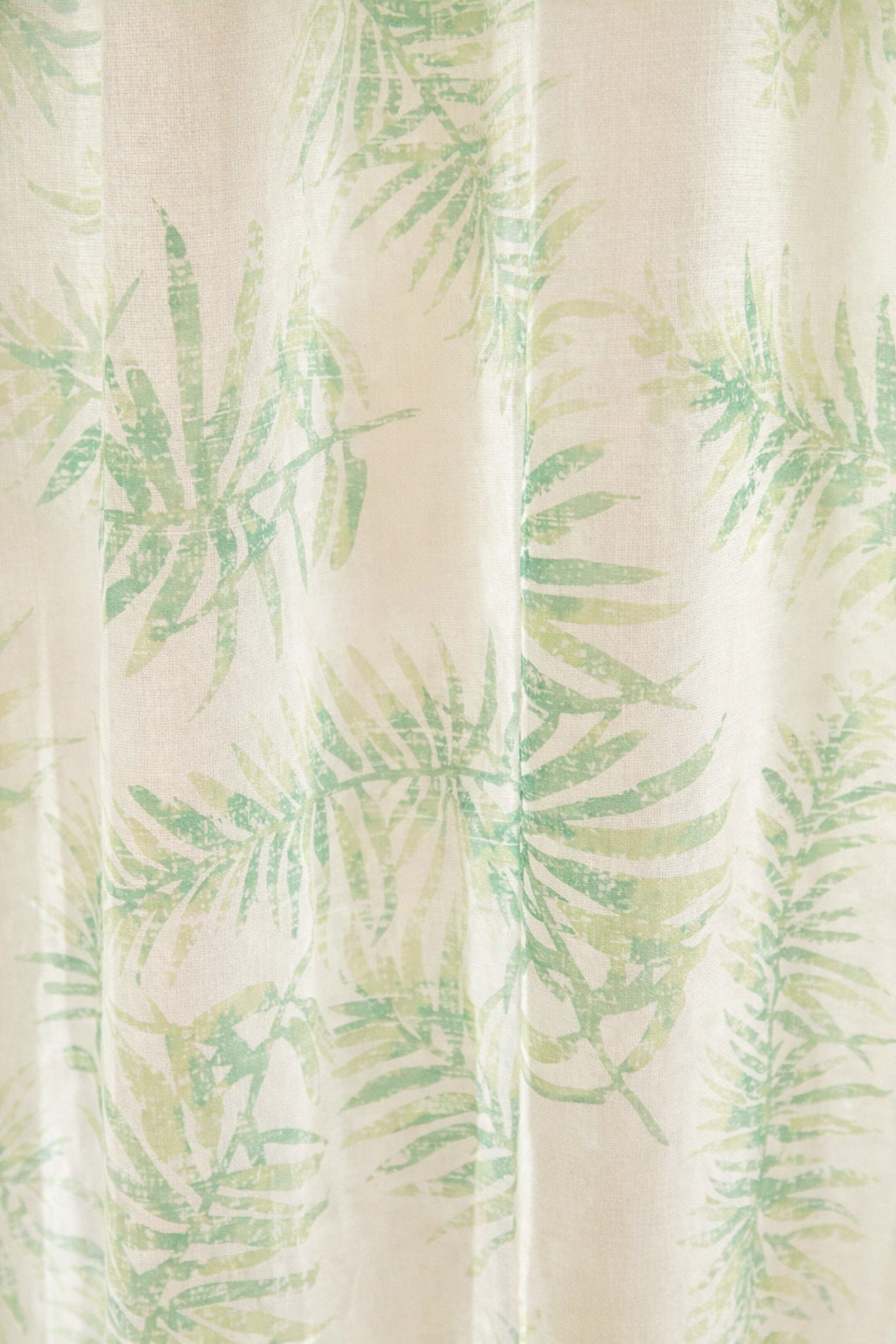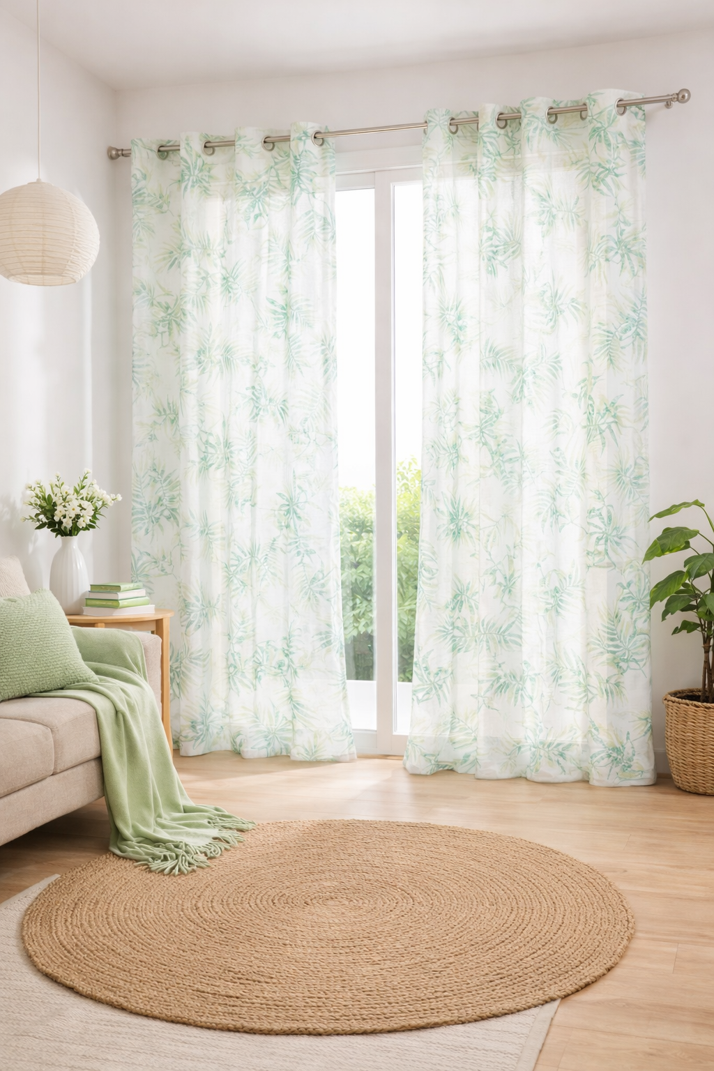 Cortina confeccionada en tejido poliéster. Con ojales metálicos para su instalación en barra fija. Ofrece un ambiente natural y auténtico permitiendo el paso de la luz.