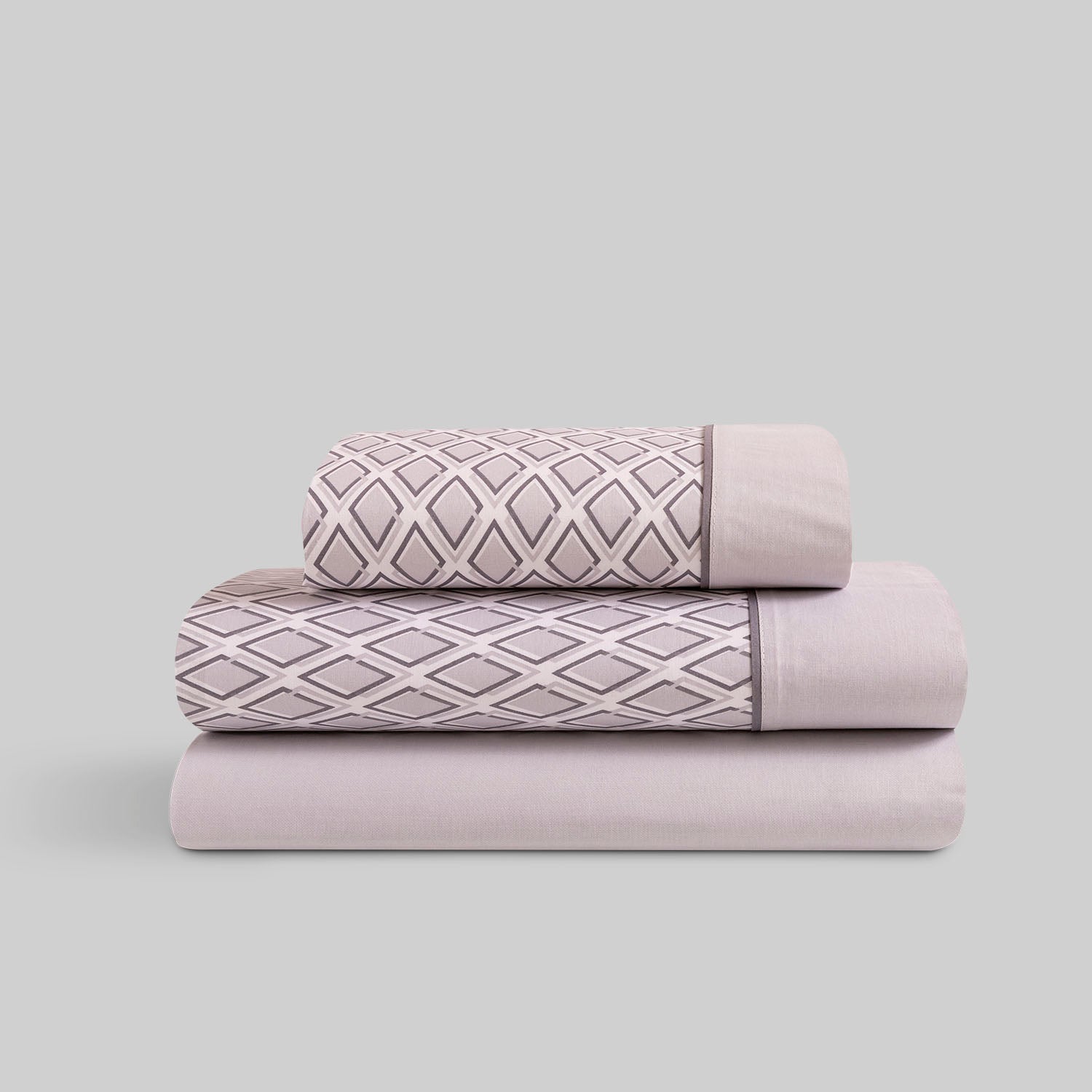 Si buscas un estilo sobrio, moderno y fácil de combinar, el Juego de Sábanas Taru en color gris es tu mejor opción. Su estampado geométrico de líneas punteadas sobre fondo blanco aporta un toque de diseño actual, mientras que la bajera en gris neutro le da ese aire sofisticado que encaja en cualquier dormitorio.