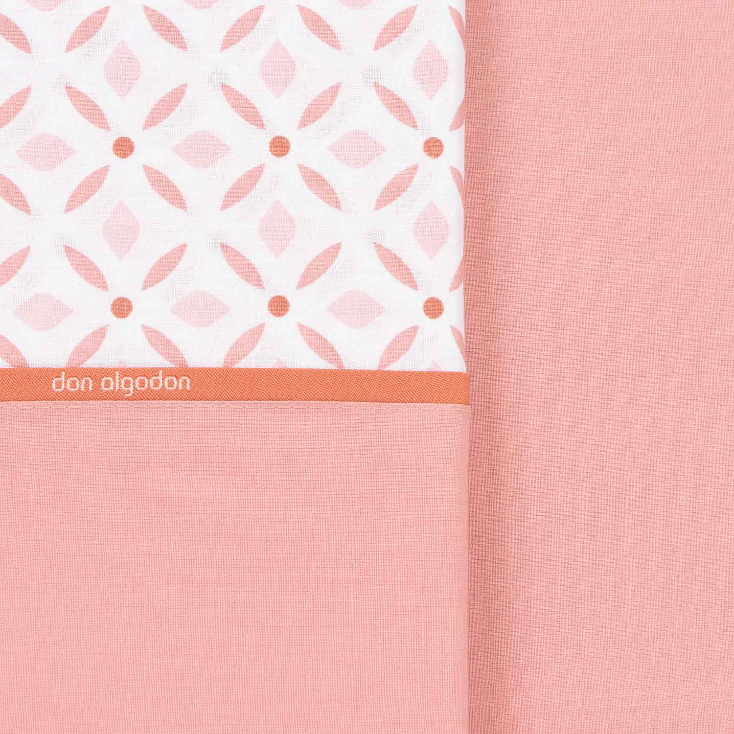 La sábana bajera incorpora una tira aplicada y vivo de color con detalle de marca Don Algodon, aportando un acabado decorativo cuidado y bien definido. La bajera es ajustable en todo el perímetro, válida para camas de 190 y 200 cm y apta para colchones de hasta 30 cm de altura, garantizando un ajuste firme y estable.