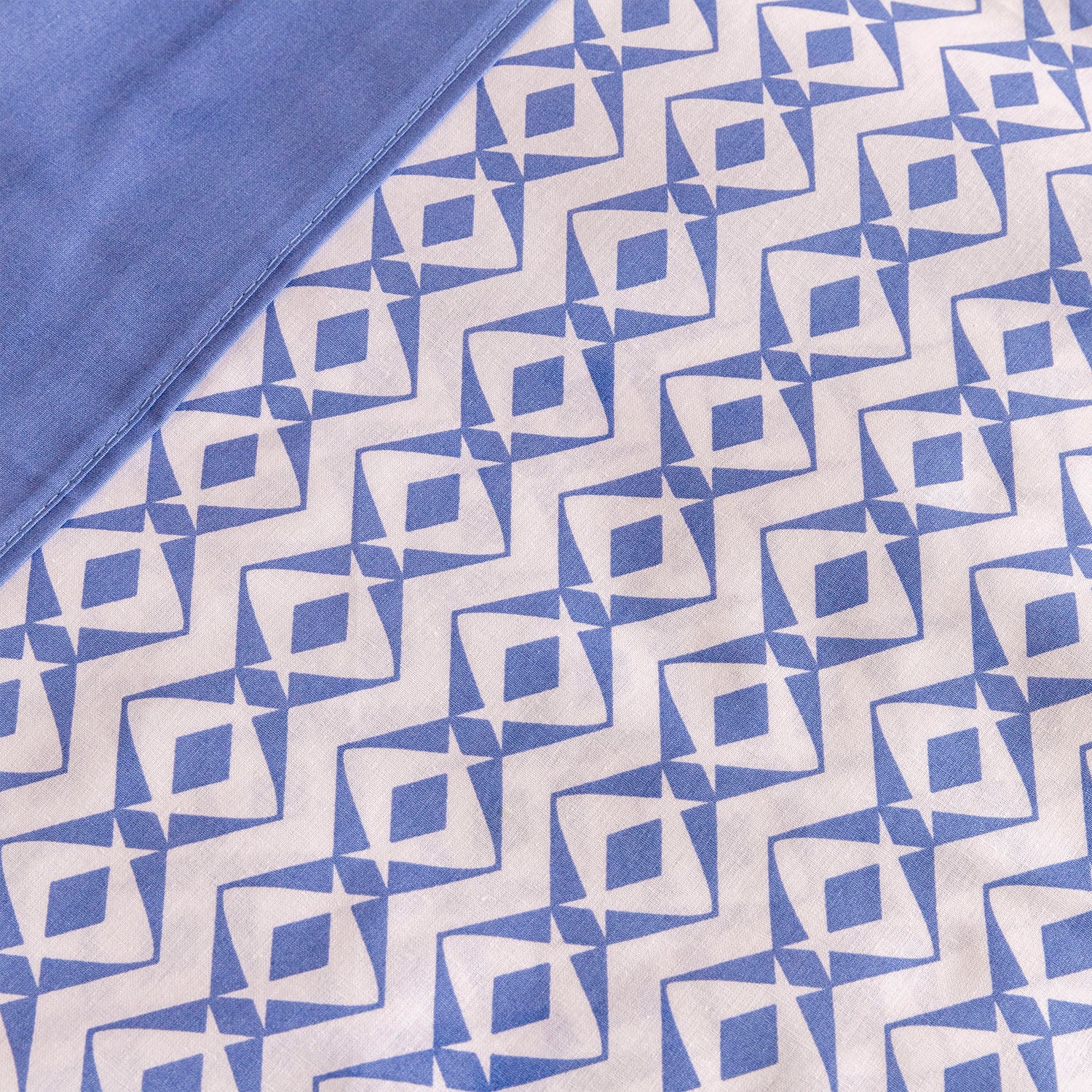 Diseño Geométrico Moderno: Estampado modelo Sashi en una gama de azules muy versátil.