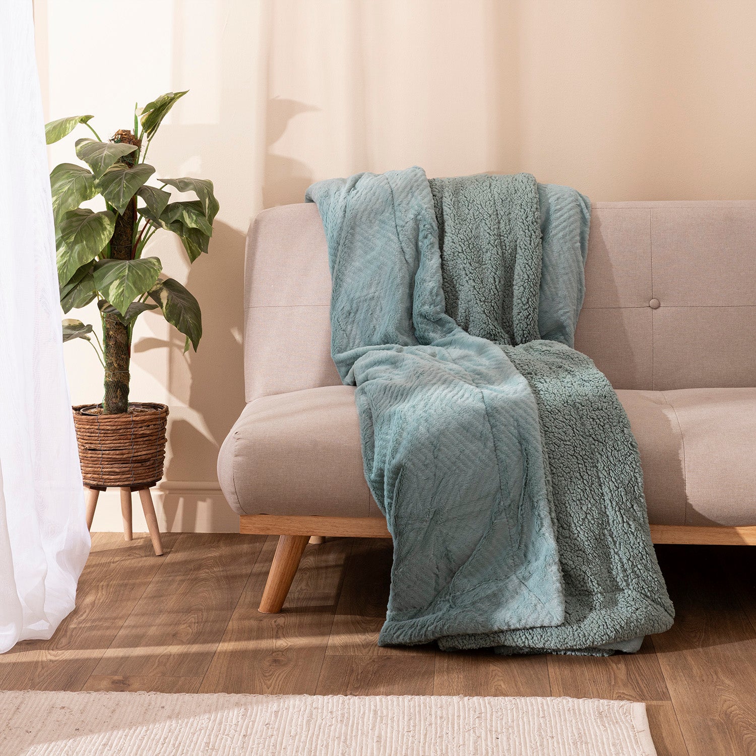 Fabricada en 100% poliéster sostenible, combina suavidad, ligereza y un excelente poder térmico, ideal para los meses de invierno. Su diseño versátil permite utilizarla como manta de sofá, cobertor ligero o incluso como pie de cama, aportando un toque decorativo y funcional a cualquier estancia.