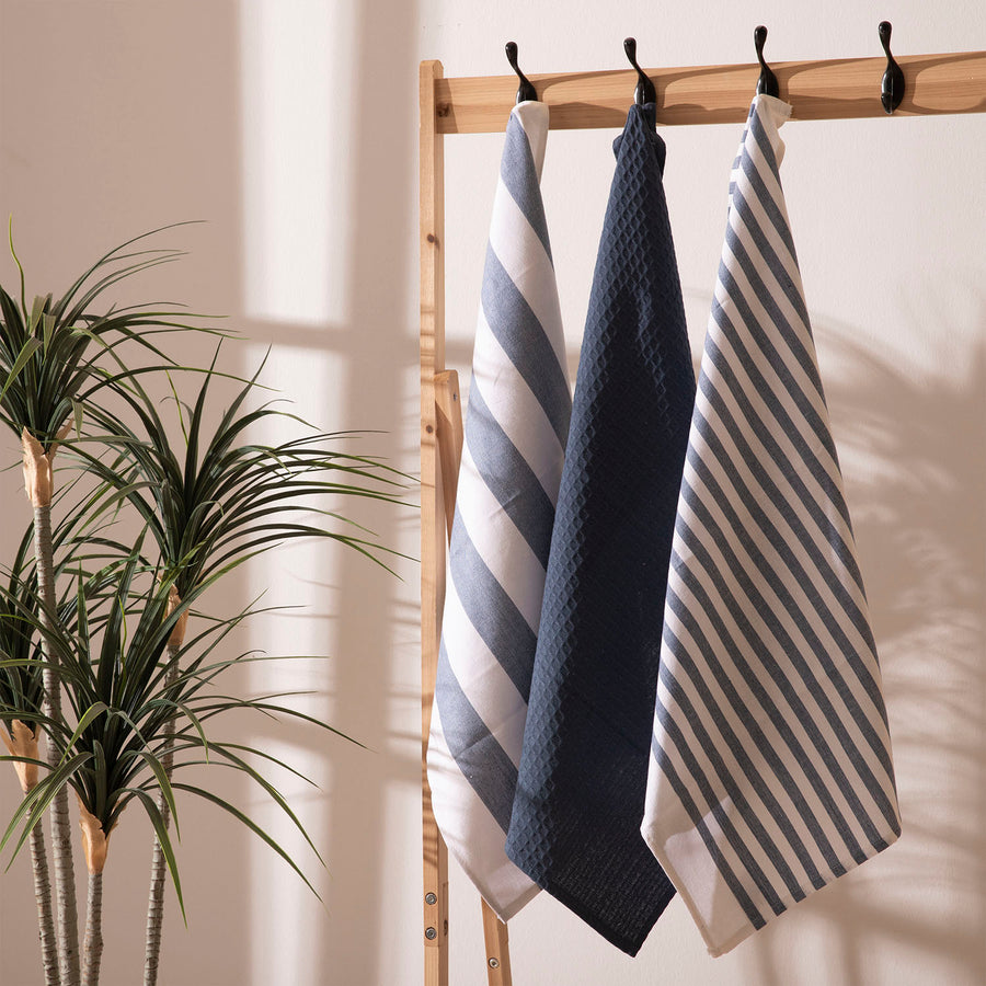 Renueva tu cocina con el nuevo set de 3 paños de cocina Lines, una novedad en Llar Textil pensada para quienes valoran la funcionalidad sin renunciar al diseño. Este conjunto combina absorción, durabilidad y un estilo moderno, ideal para el uso diario.